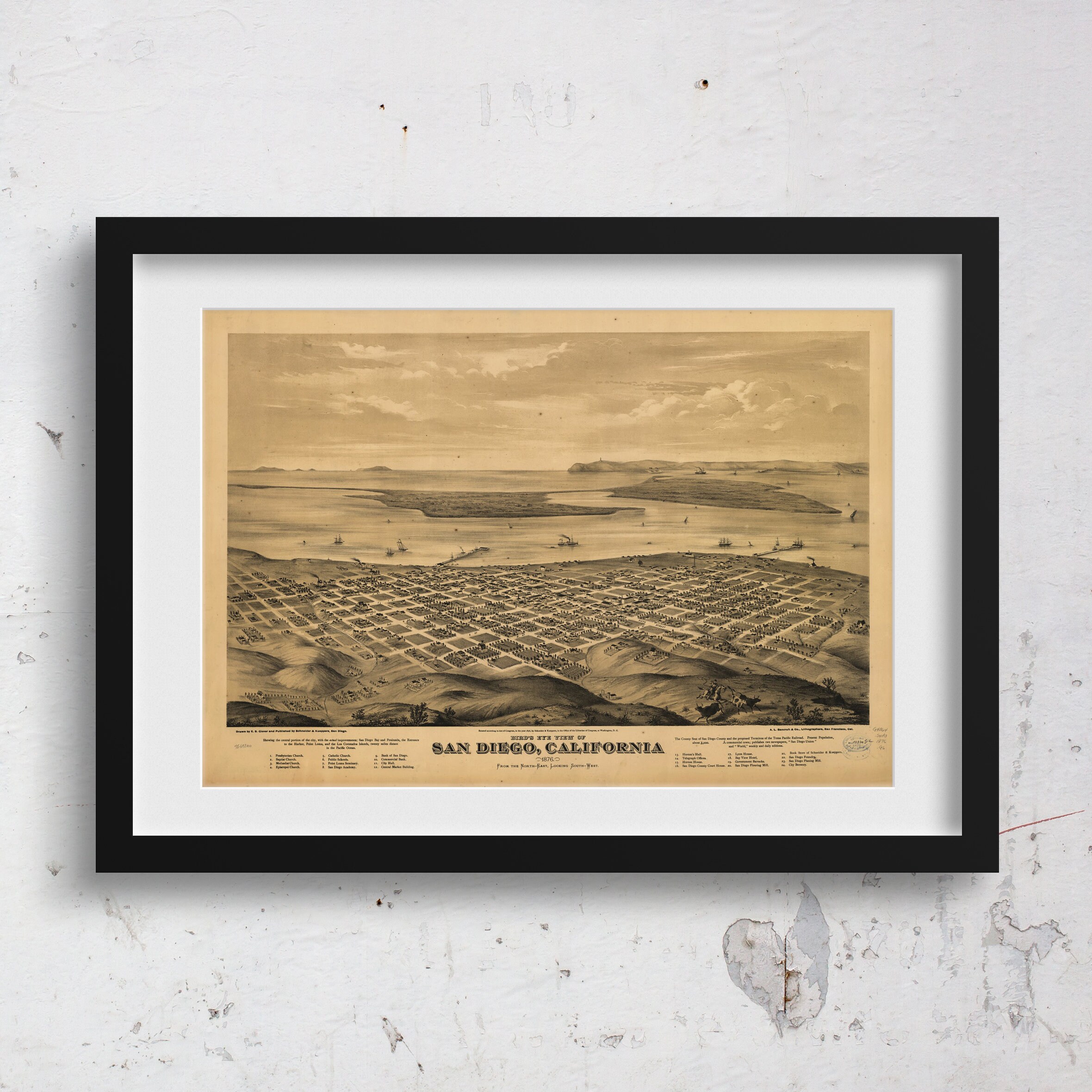 1876 San Diego Map Canvas Art Canvas Wrap Vintage San Diego Etsy